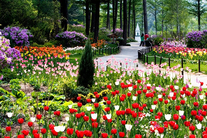 아침고요수목원은 축령산의 빼어난 자연경관을 배경으로 하여 한국의 미를 듬뿍 담은 정원들을 원예학적으로 조화시켜 설계한 원예수목원이다. 여러 가지 특색 있는 정원을 갖추고 있고, 울창한 잣나무숲 아래에서 삼림욕을 즐길 수도 있어 도시민들에게 쉼터를 제공한다. 설계자(한상경, 삼육대학교 원예학 교수)가 명명하였으며, 1996년 5월에 개원하였다. 20개의 주제를 가진 정원은 아름답게 가꾸어진 잔디밭과 화단, 자연스러운 산책로로 연결되어 있다. 특히, 아름다운 대한민국의 금수강산을 실제 한반도지형 모양으로 조성하여 최고 절정의 꽃으로 표현한 하경정원(Sunken Garden)은 관광객들의 관심을 가장 많이 끄는 곳이다. 또한, 이곳에는 백두산 식물 300여종을 포함한 5,000여 종의 식물들을 만나볼 수 있으며, 영화 ‘편지’를 시작으로 영화 ‘조선명탐정’, ‘중독’, 드라마 ‘황금빛 내 인생’, ‘손 꼭 잡고 지는 석양을 바라보자’, ‘저글러스’, ‘군주’, ‘블랙’, ‘학교2017’, ‘왕은 사랑한다’, ‘내성적인 보스’, ‘구르미 그린 달빛’, ‘웃어라 동해야’, ‘미남이시네요’, ‘이 죽일 놈의 사랑’, 예능 ‘무한도전’, 다큐 ‘성공다큐 최고다’ 등의 촬영장소로 알려져 많은 관광객이 다녀가고 있다. (자료출처 : 대한민국 구석구석 - korean.visitkorea.or.kr) 위치 : 펜션에서 차량으로 약 20분, 12km